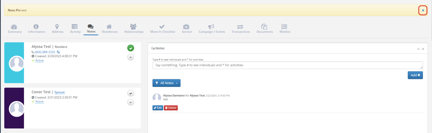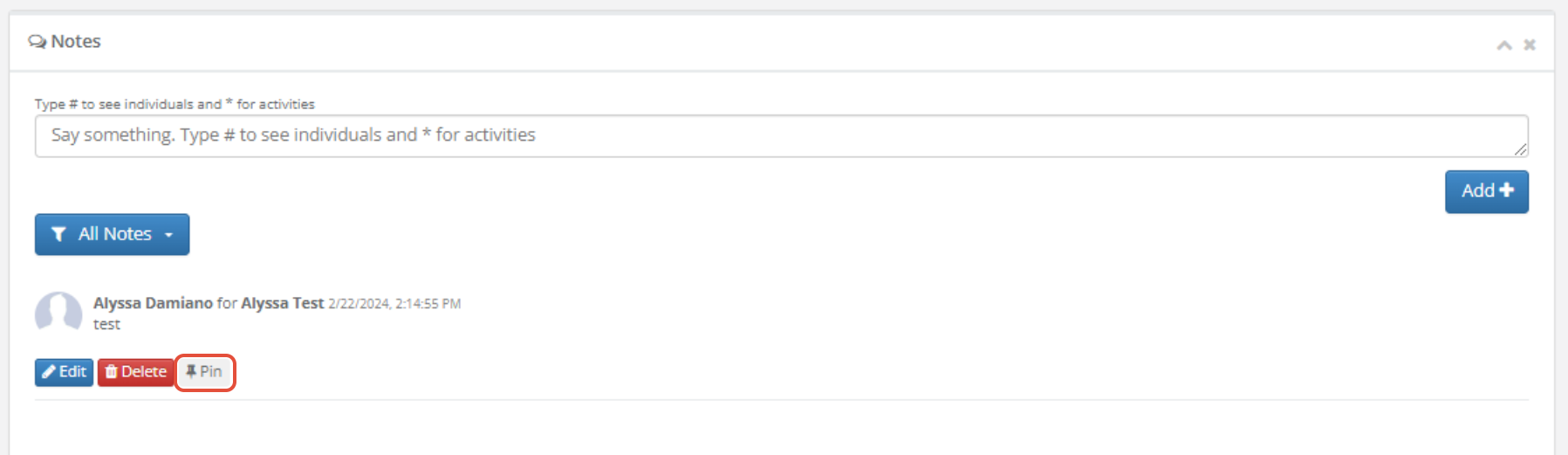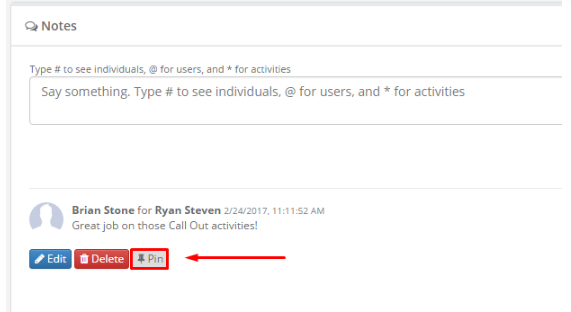 Note: You will see the note pin button next to the note if the note needs to be pinned again