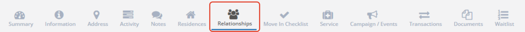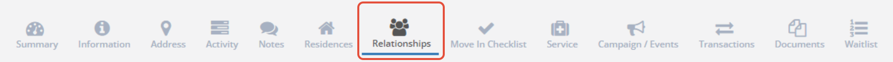 Step 1: Navigate to the profile whose current relationship you would like to make a primary contact and click the Relationships tab.