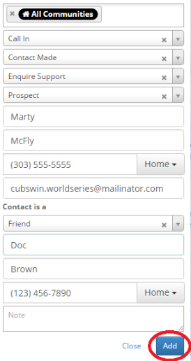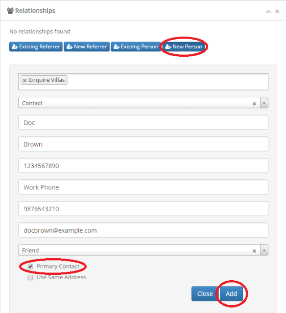Step 3: Click New Person, fill out the form, click the checkbox next to Primary Contact and click Add.