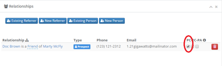 Step 2: Click the check mark below PC. This will mark that contact as the Primary Contact.
