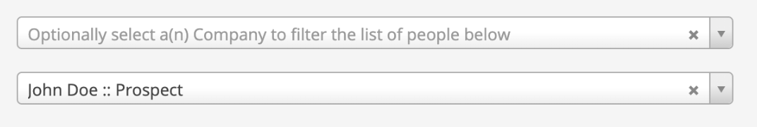 Step 4: To search by company/account, click into the "Optionally select a(n) Company to filter the list of people below" drop down and search for a company and select a result. The "Search for a person" drop down will now only search for individuals at the selected company. Once a company and individual has been selected, click Add.
