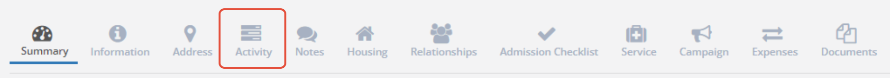 Step 1: Navigate to the profile you would like to back date an activity for and click the activity button
