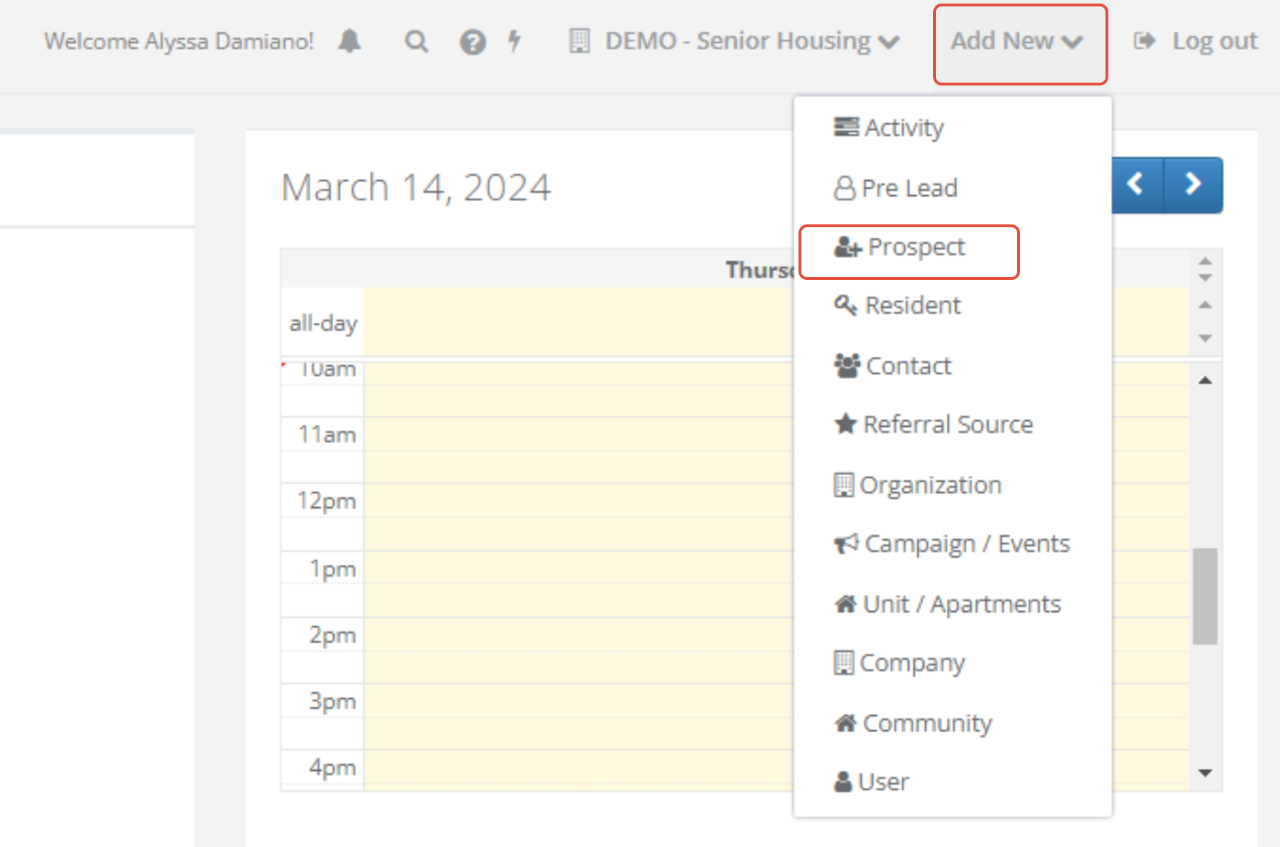 Step 2: Fill out the New Prospect form and at the bottom of the form, click the Date field