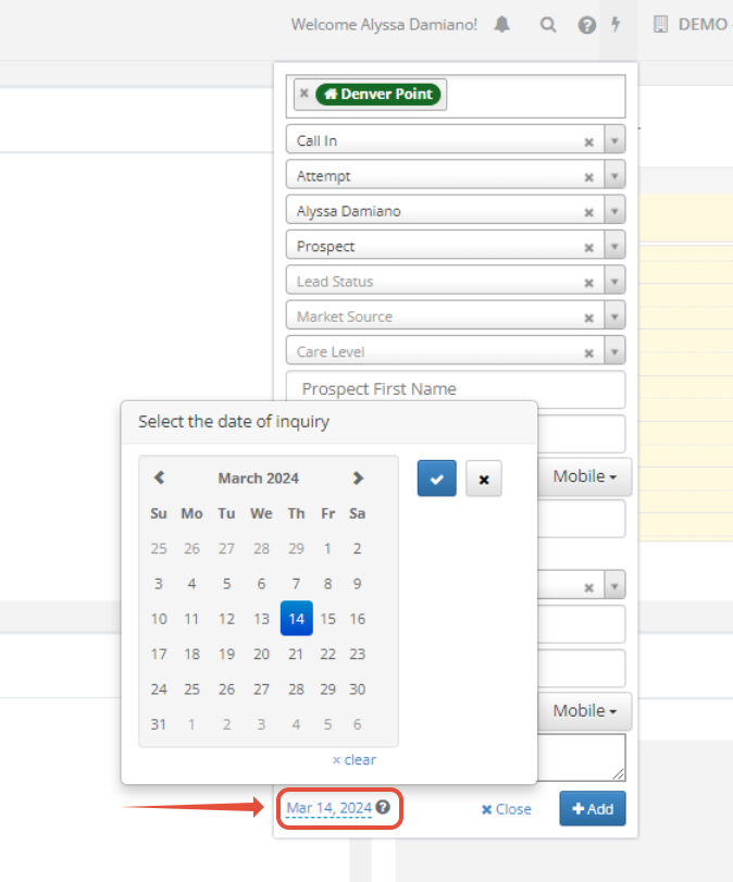Step 3: Choose the Date when the Inquiry occurred and click the Blue Check mark button