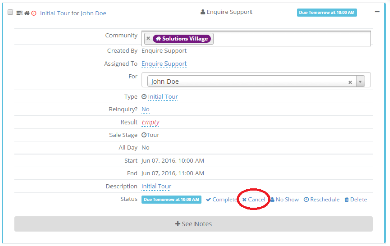 In this article, we will review how to update an activity status. We will review how to complete, cancel, no show and reschedule an activity.