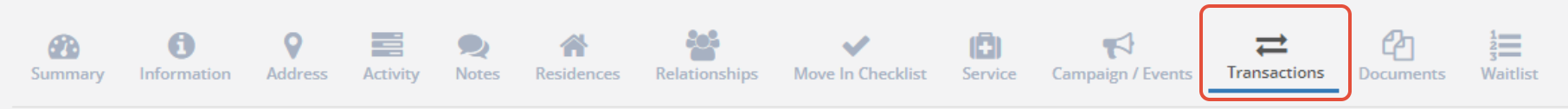 Step 1: Navigate to the profile you'd like to add a transaction to and click on the Transactions Tab.