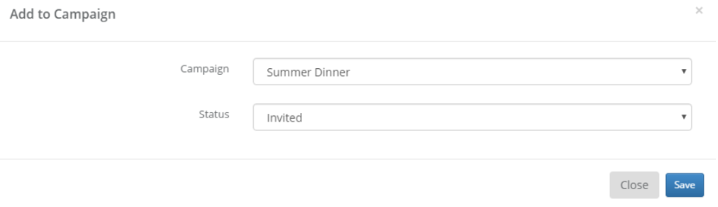 Step 4: In the pop up window select the Campaign you want to add them to and their Status in the campaign.