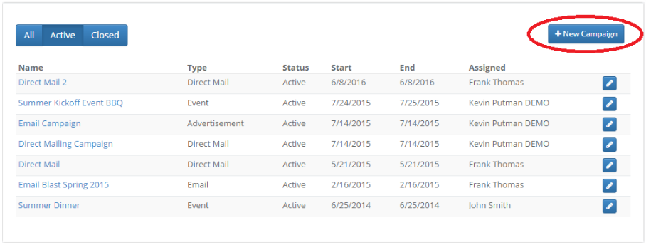 Step 2:Click the small pencil icon to the right of the campaign you would like to edit.