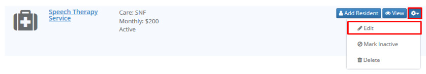 Step 2: From the list of available services, click the small blue gear icon to the right of the service you would like to edit, and click Edit.
