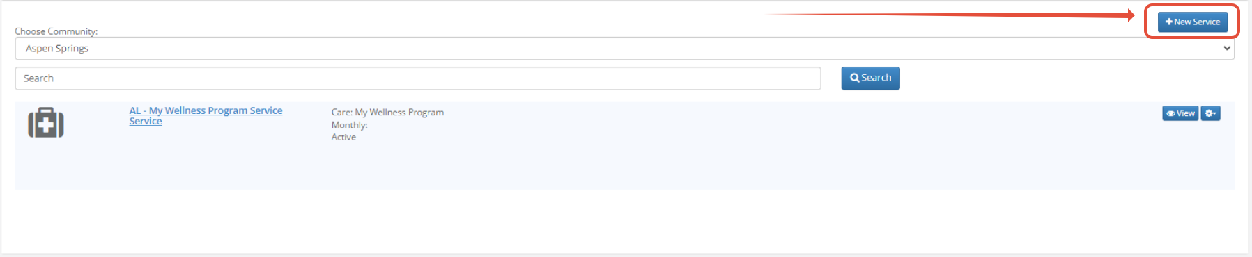 Step 2: In the upper right of the page, click the blue New Service button.