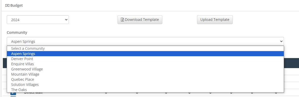 Step 2: In the Community column, click the name of the community you would like to set budgets for