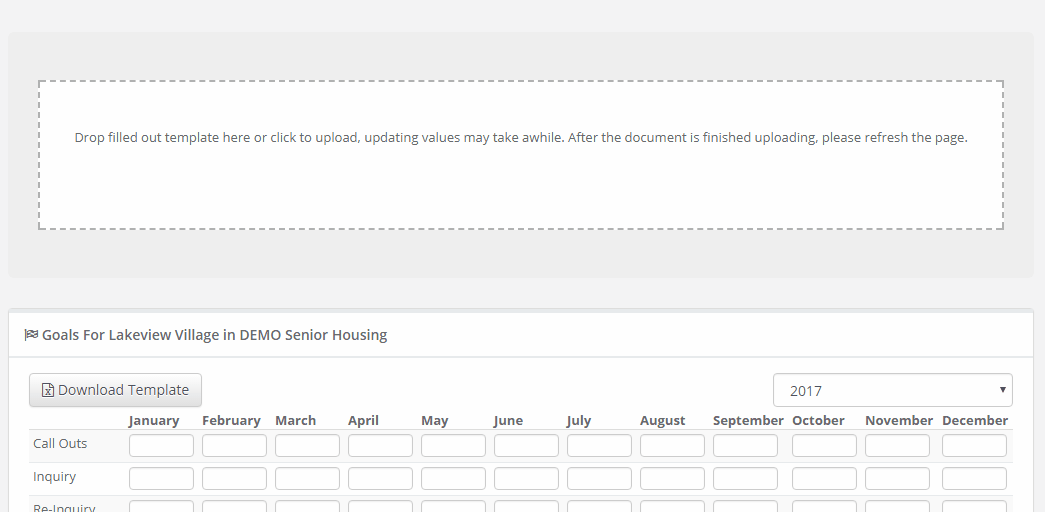 Step 8: Once you have uploaded the template, refresh the page. Your goals will then populate in the corresponding fields.