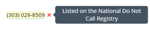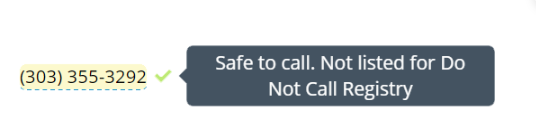 The green check mark indicates that this individual is not registered on the Do Not Call registry and is safe for contact.