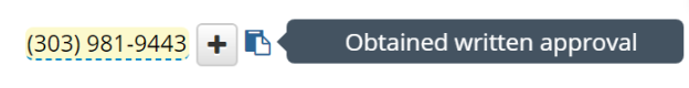 The blue clip board and file symbol indicates that you have received written approval from the individual to contact them at the listed phone number. The approval can be uploaded to the documents section.