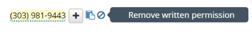 If you've accidentally added Written Approval to a phone number, you can remove it by clicking the blue ban icon to the right of the written approval icon. This will return the phone number back to it's previous DNC status.