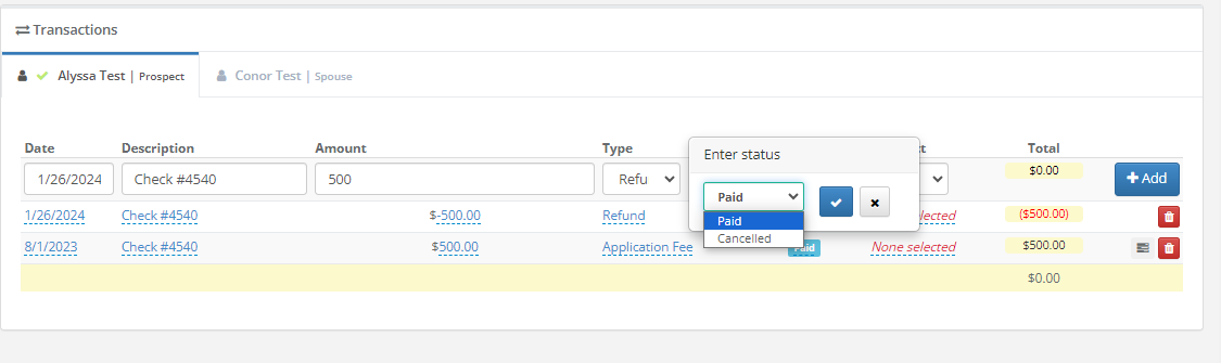 Note: You can enter in a negative amount or a positive amount for the refund transaction. The amount will automatically be deducted from the total.