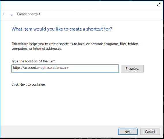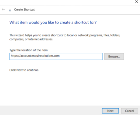 Step 4: A new window will appear. In this window copy and paste the following link into the URL box: https://account.enquiresolutions.com