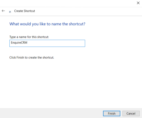 Step 6: Enter the name of the shortcut. For instance "EnquireCRM".