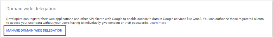 Step 4: Click Manage Domain Wide Delegation located under the Domain Wide Delegation section.