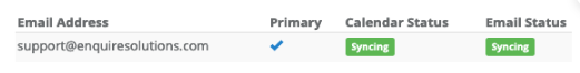 Step 8: Once the sync has finished, the status window will display sync results for each account and the Calendar status for each user will be updated based on the results of their sync: