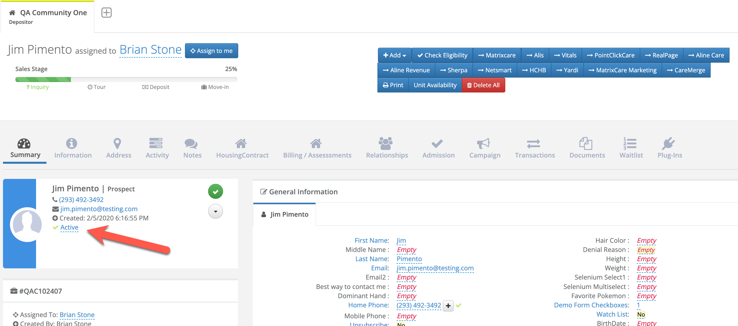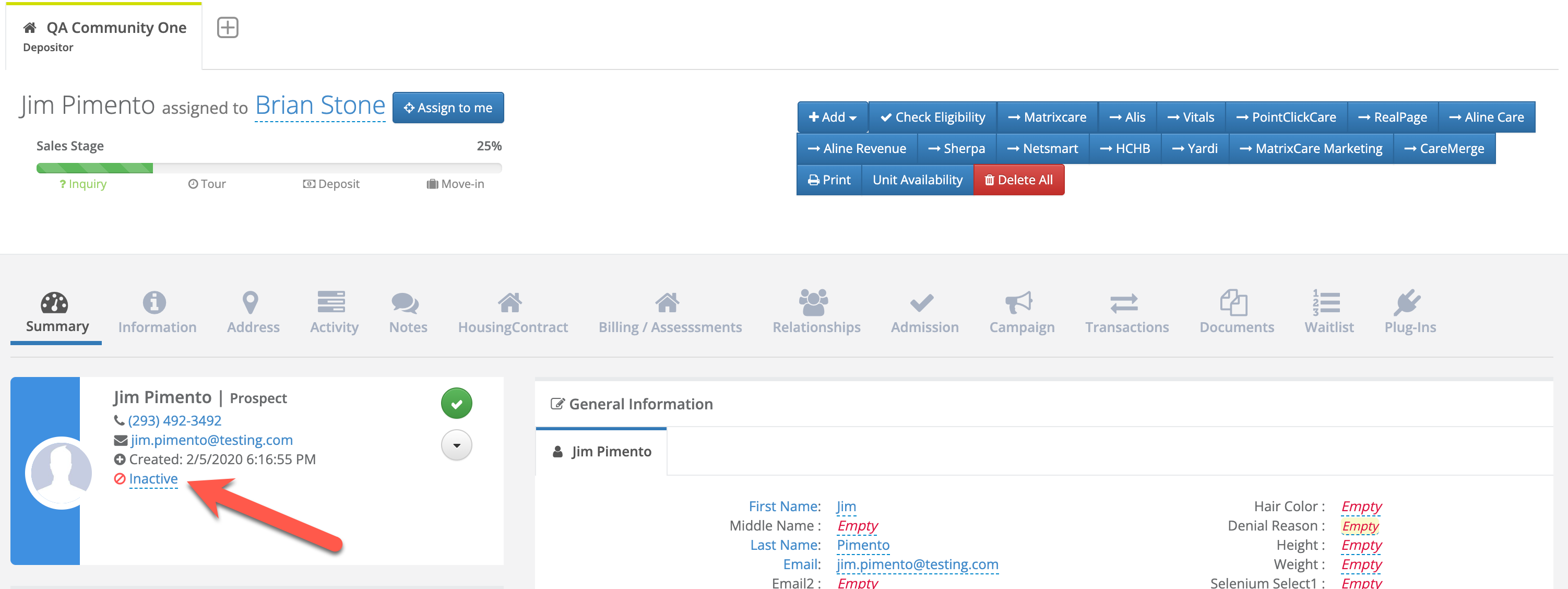 Step 4: The Prospect will now show as Inactive.