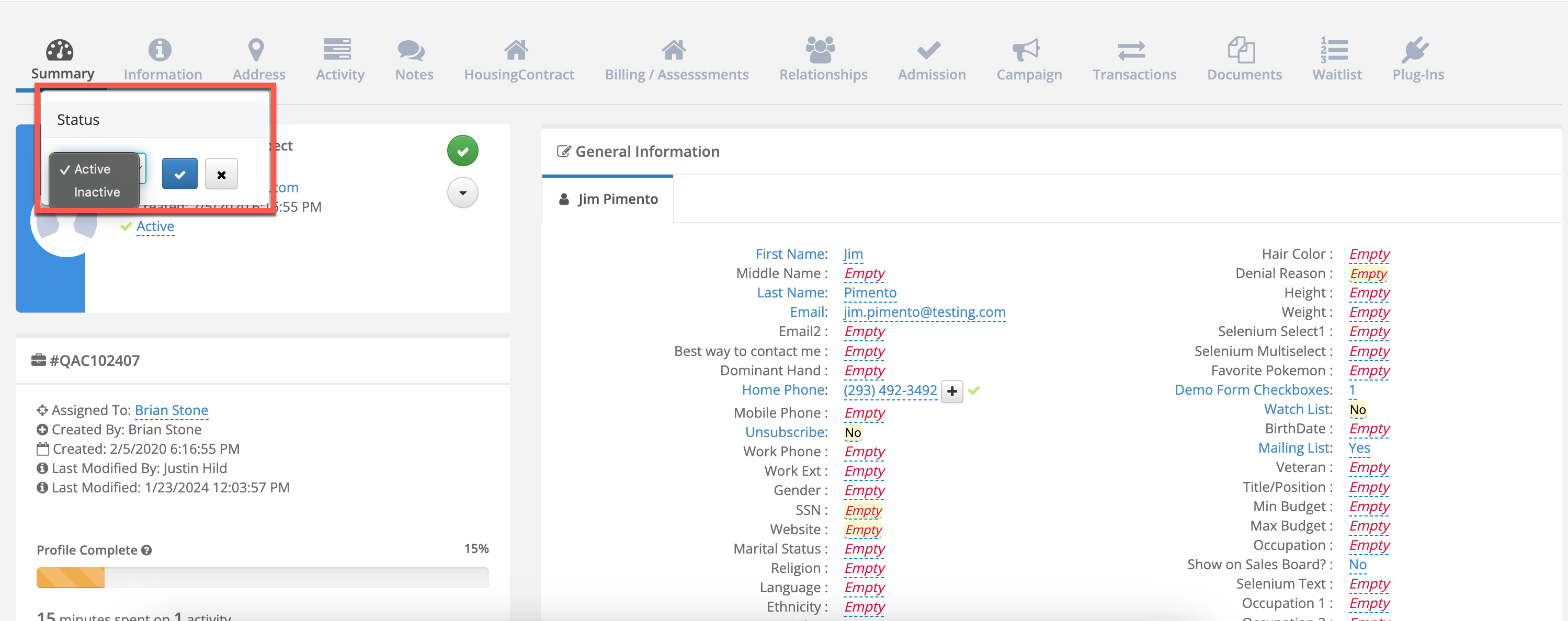 Step 1: Navigate to the Prospect profile that you would like to make Inactive.