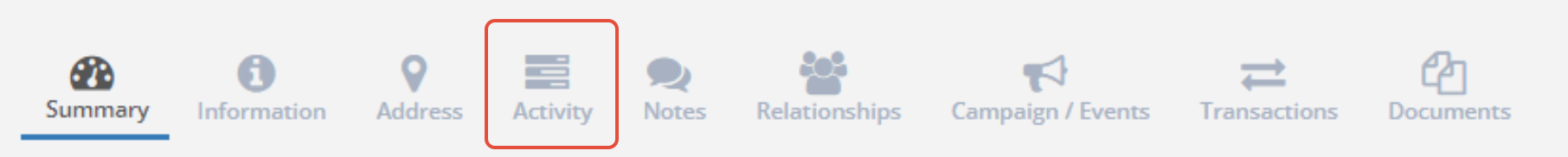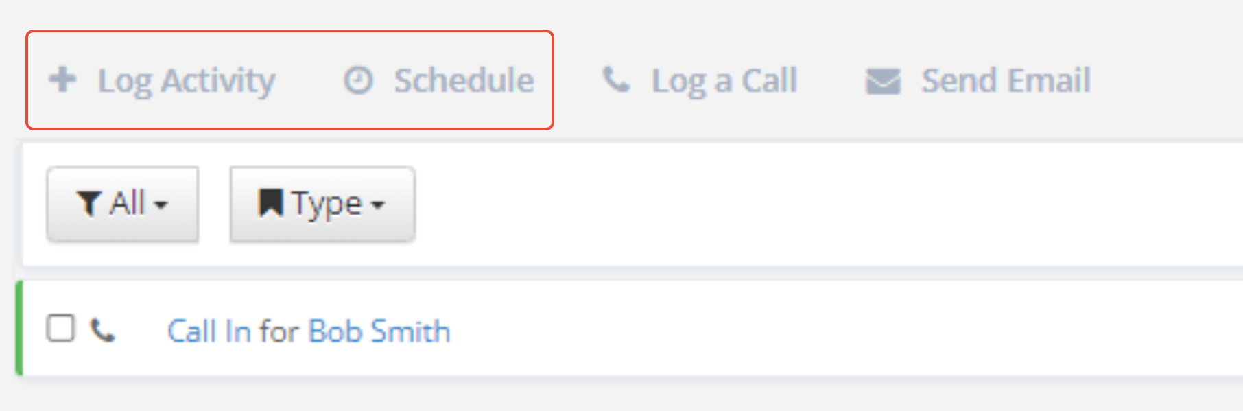 Step 2: Click the Log Activity or Schedule tab on the activity box. Use Log Activity to create an activity that has already happened and Schedule to create an activity for a future date.