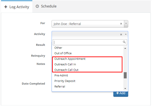 Adding Outreach Activities to a Referring Contact