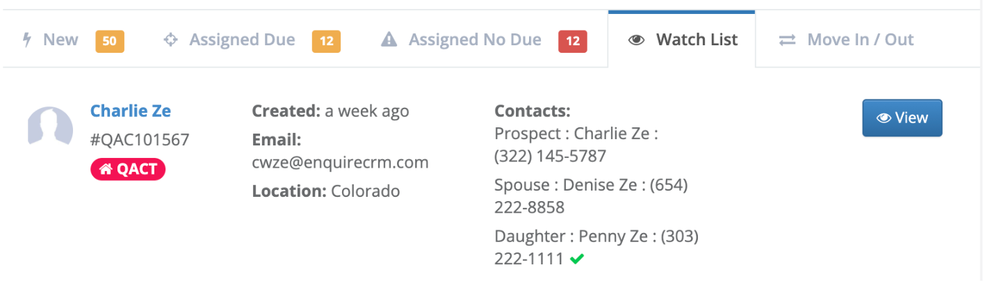 The Watch List tab displays individuals currently assigned to you that have the Watch List field on their profile set to Yes.