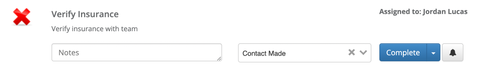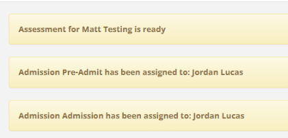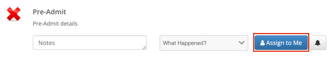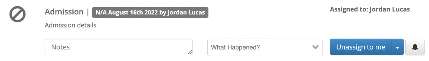 - When accessing the admissions section in an individual profile you will see a bell icon to the right of the checklist item.