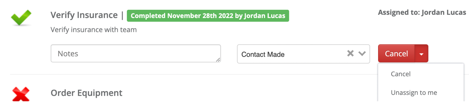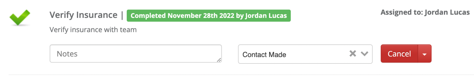 If a checklist item has already been completed, you can cancel it by clicking the Cancel button.