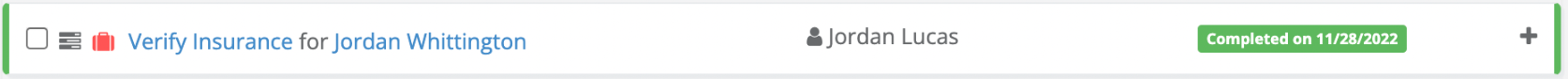 The checklist item will now be complete. A green complete banner will display with the date of completion and the user that completed the item.