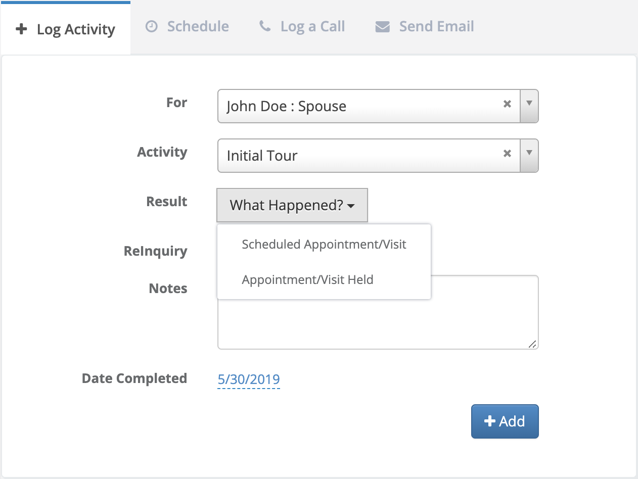 Activity result tiering will affect the Activity Resolution drop down at the following locations in Enquire:
