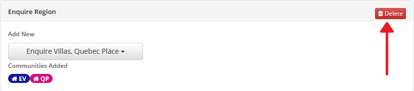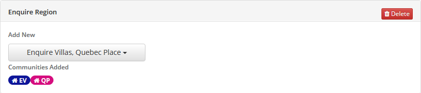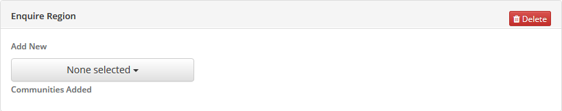 Step 2: Enter a name for your region in the Region Name field and click the blue + Add button. You will now have a new region to add communities to.