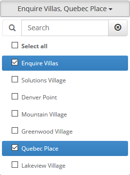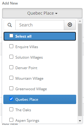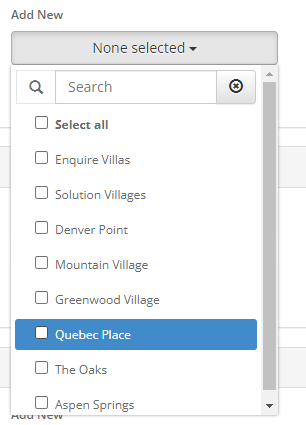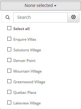 Step 1: Click the grey None selected button. This will bring up a drop down with all of your company's communities.