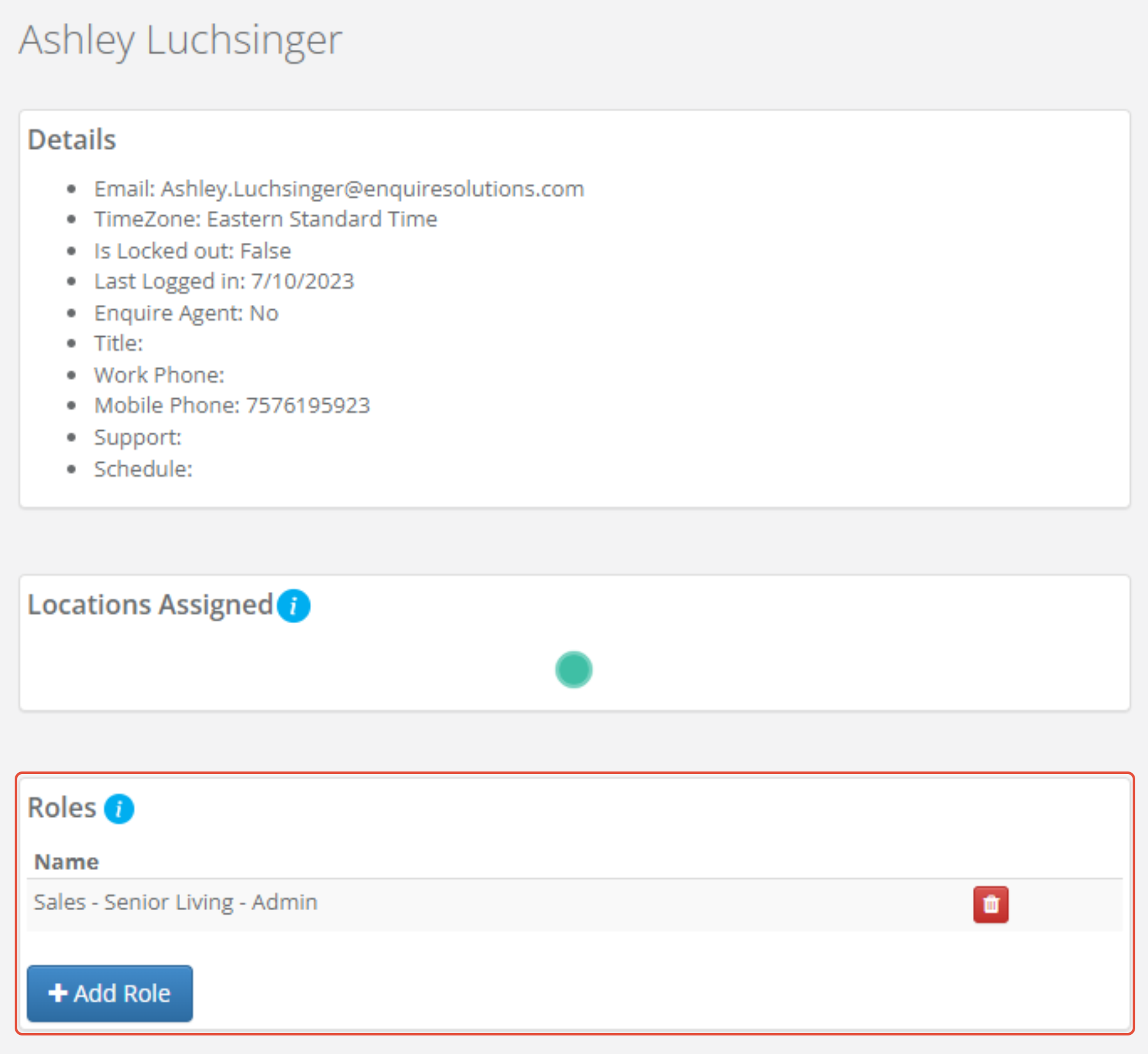 Note: If you are updating a users role make sure to remove the old role by clicking the red trashcan next to the role on the users profile so permissions are accurate to what is needed for the user.