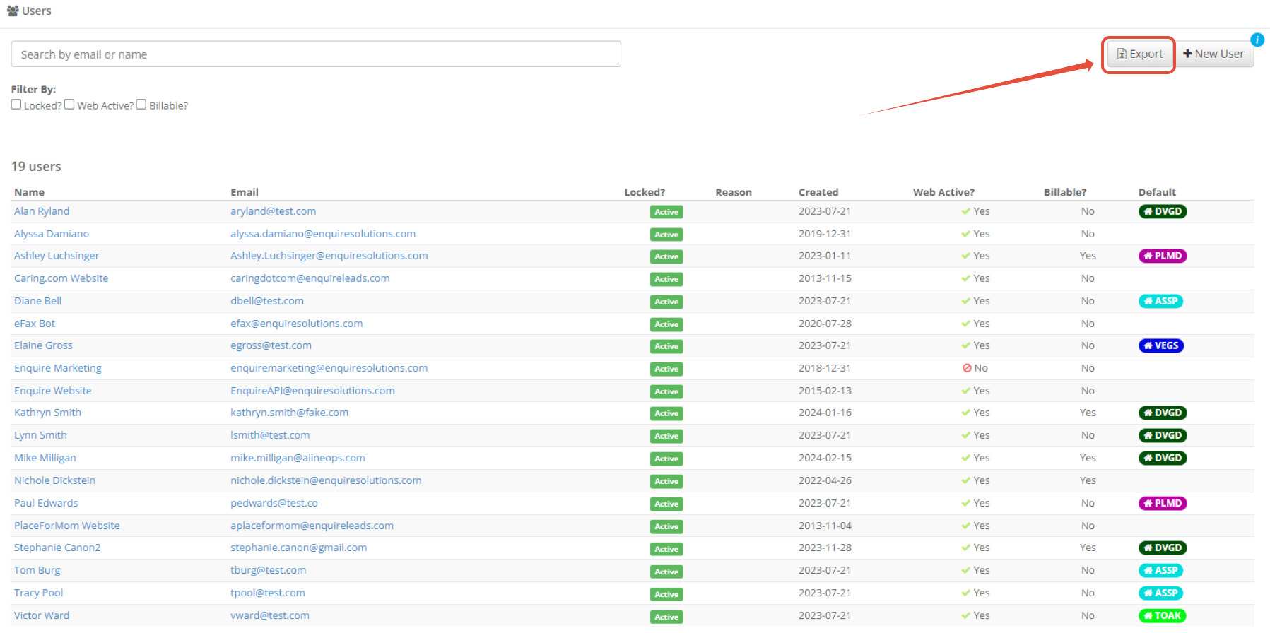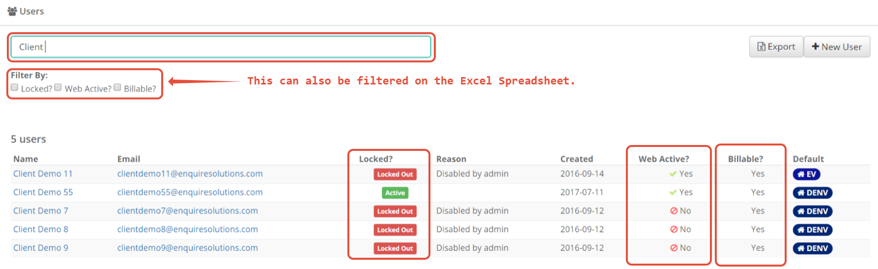 Step 3: Click the export button once ready to download the Excel sheet to view the users. Please note that additional filtering can be done on the Excel Spreadsheet.
