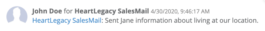 - In order for the HeartLegacy SalesMail integration to correctly create the activity you will need to ensure an activity with the name of HeartLegacy SalesMail exists and is spelled correctly. You can read our Updating Dropdown Types article if you have questions about creating this activity.