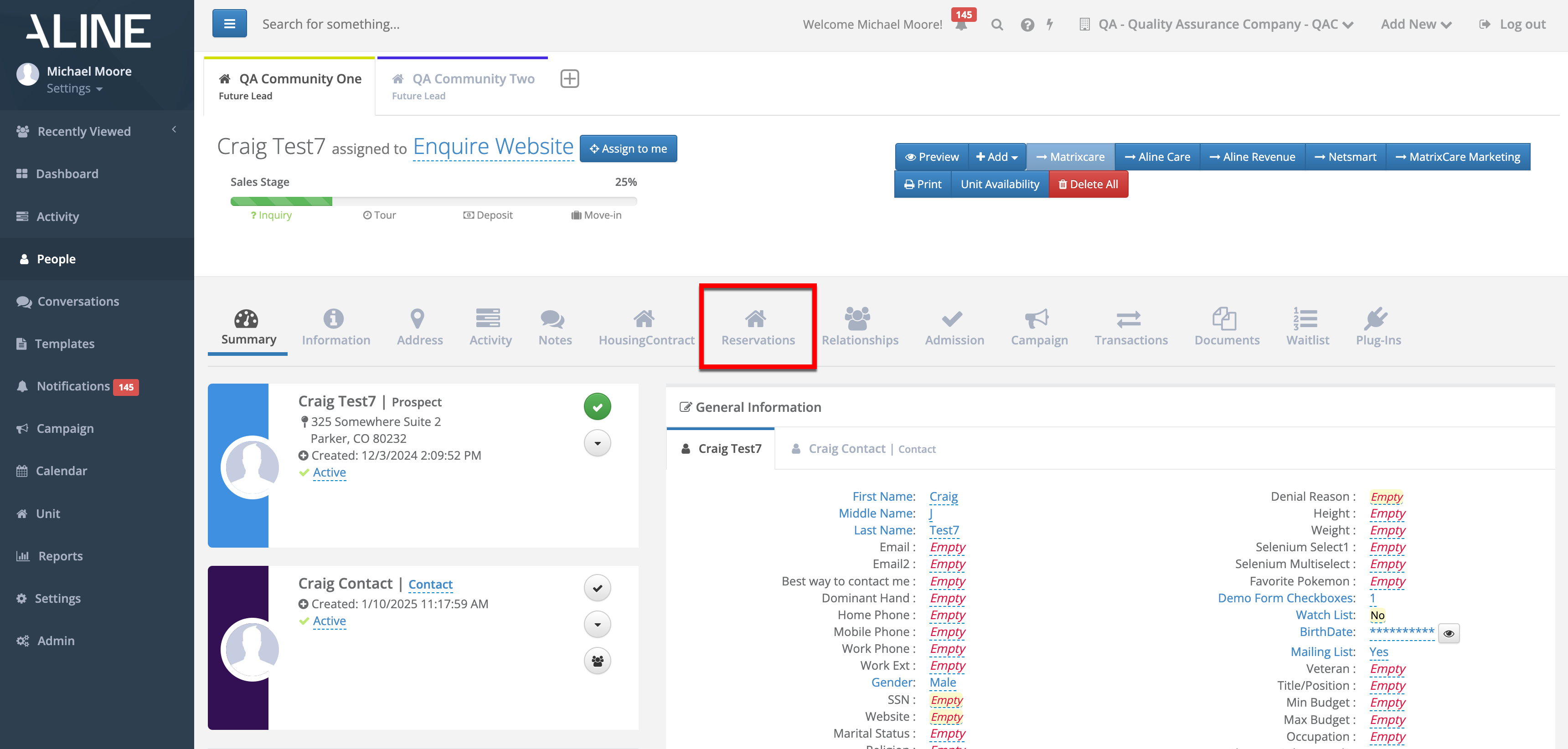 Note: in place of creating reservations, users can also export the profile to Vitals for assessments and/or waitlist deposits by selecting Send for Assessment and/or Send for Waitlist Deposit, respectively.