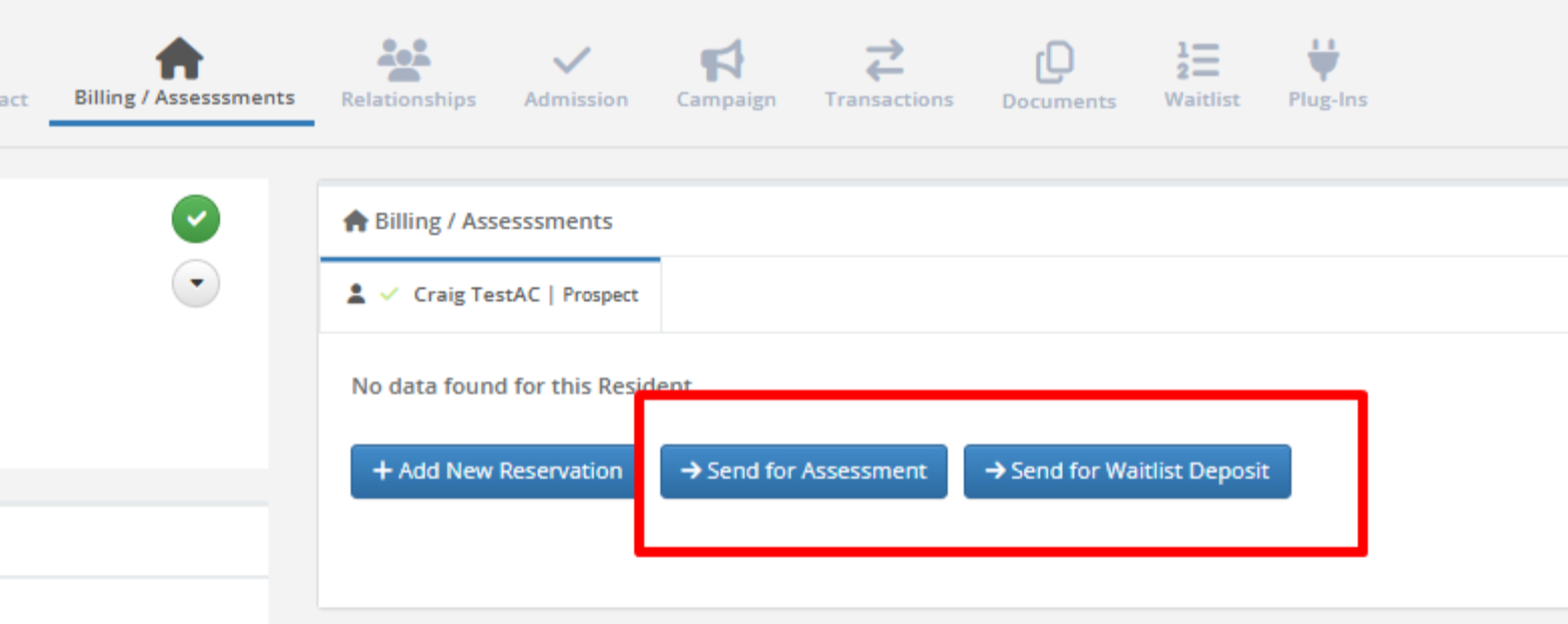 Send Prospect To Vitals for Pre Assessment or Waitlist Deposit
