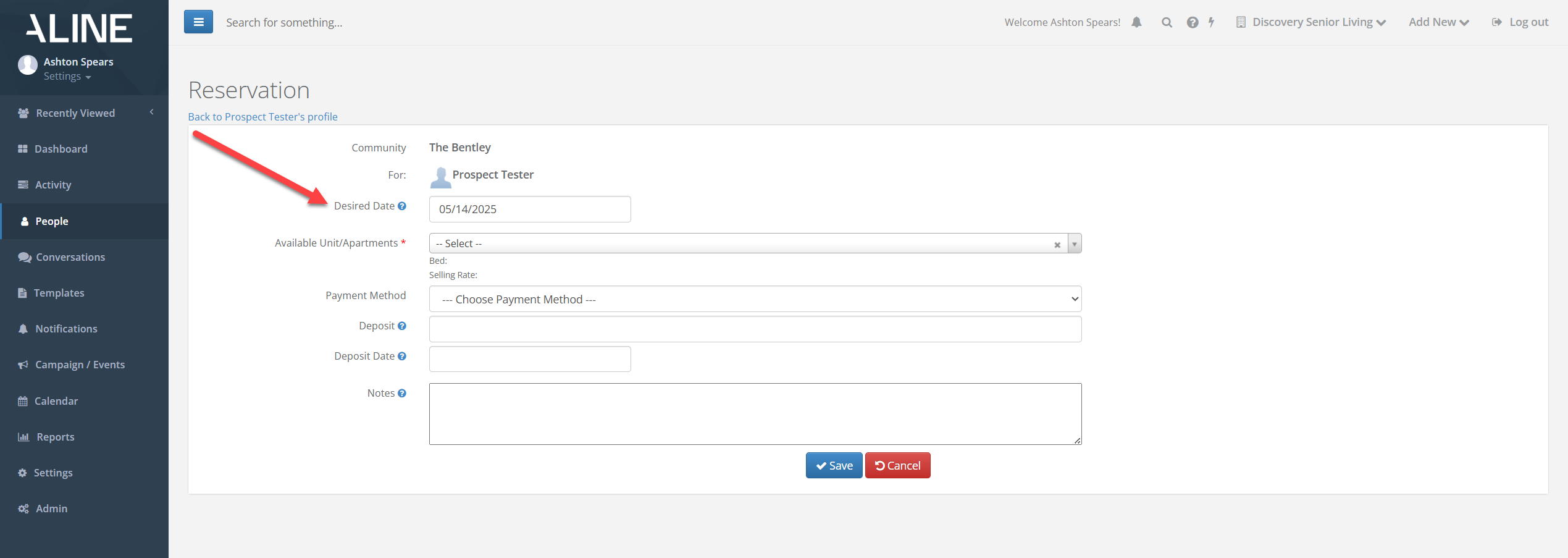 Next, fill out the Apartment Rate, Processing Fee Discount, Move In Allowances, and Notes fields as required. Finally, once all details have been entered. Select Save at the bottom of the form to save the new reservation.