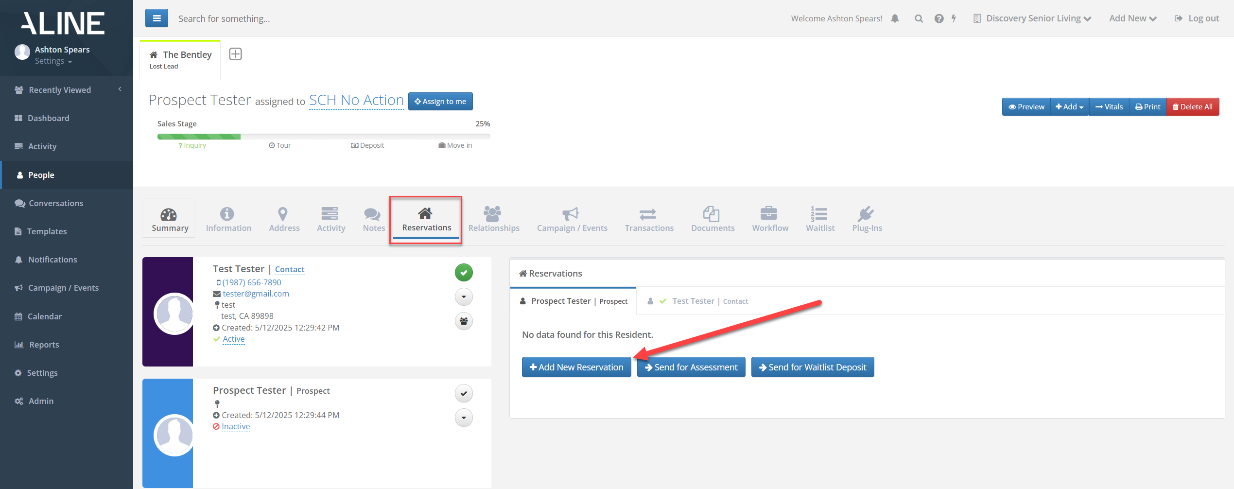 From the Reservation Module tool, Select + Add New/Existing Reservation.