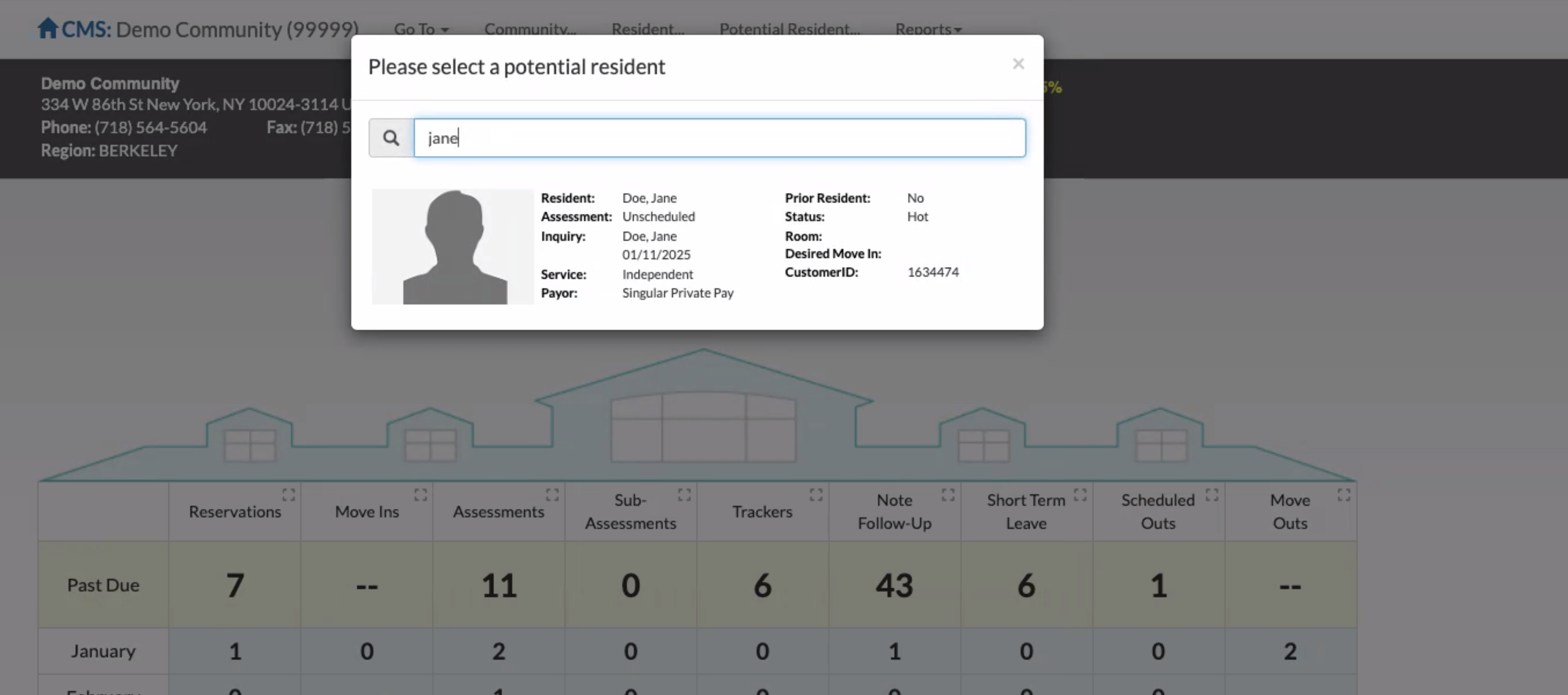 Within the Aline Care platform, you will now be able to search for the potential resident by name, and your care team will be able to complete the assessment.