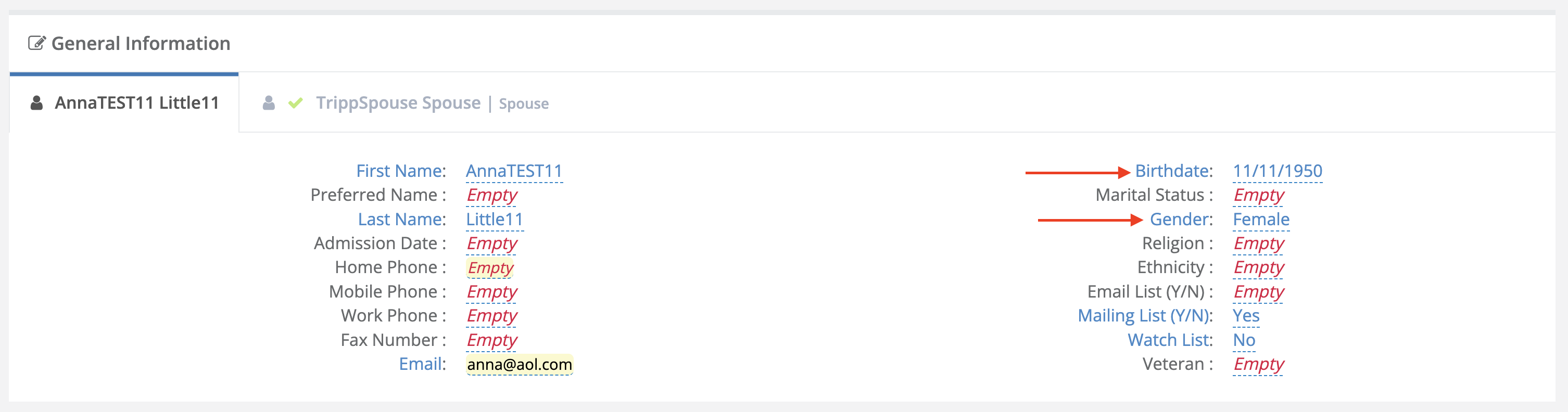 NOTE: Before clicking the Send to Aline Revenue button, Birth Date and Gender are required fields for each converted Resident.