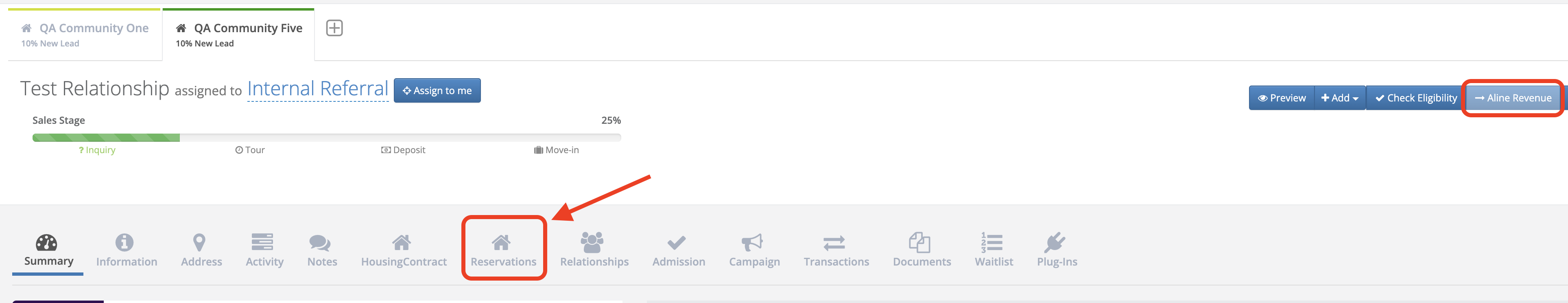 - If a Prospect is pushed to Aline Care first, the Aline Revenue button will still be available for the user to reserve a room for the Prospect