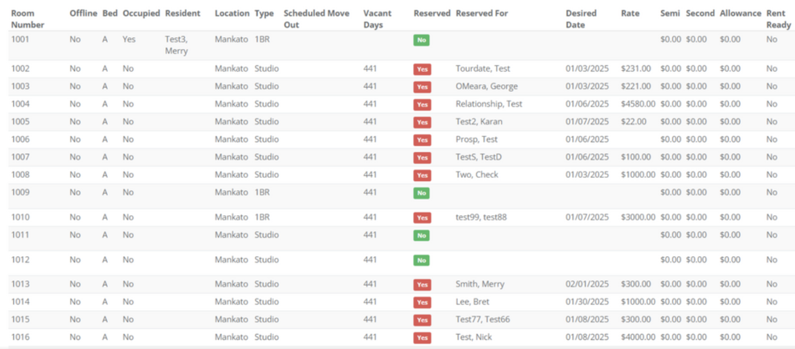 When adding a new Reservation, note that your Available Unit/ Apartments dropdown menu is dynamically updated based on your inputs for Desired Date and Payor Type.