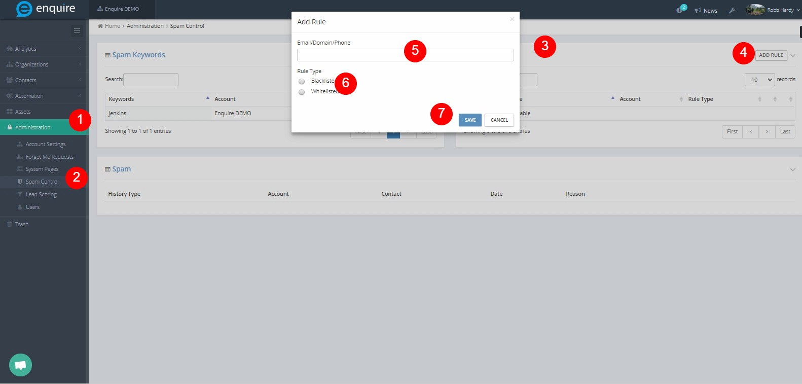The SPAM Control function in Enquire MAP is very useful for controlling who can and can not make contact. A big aspect of marketing is identifying potential customers and so when receiving online requests or phone calls from people that will never buy, it can be a distraction. Furthermore, passing unqualified contacts onto sales is a waste of time. There are two aspects to SPAM Control in Enquire MAP: