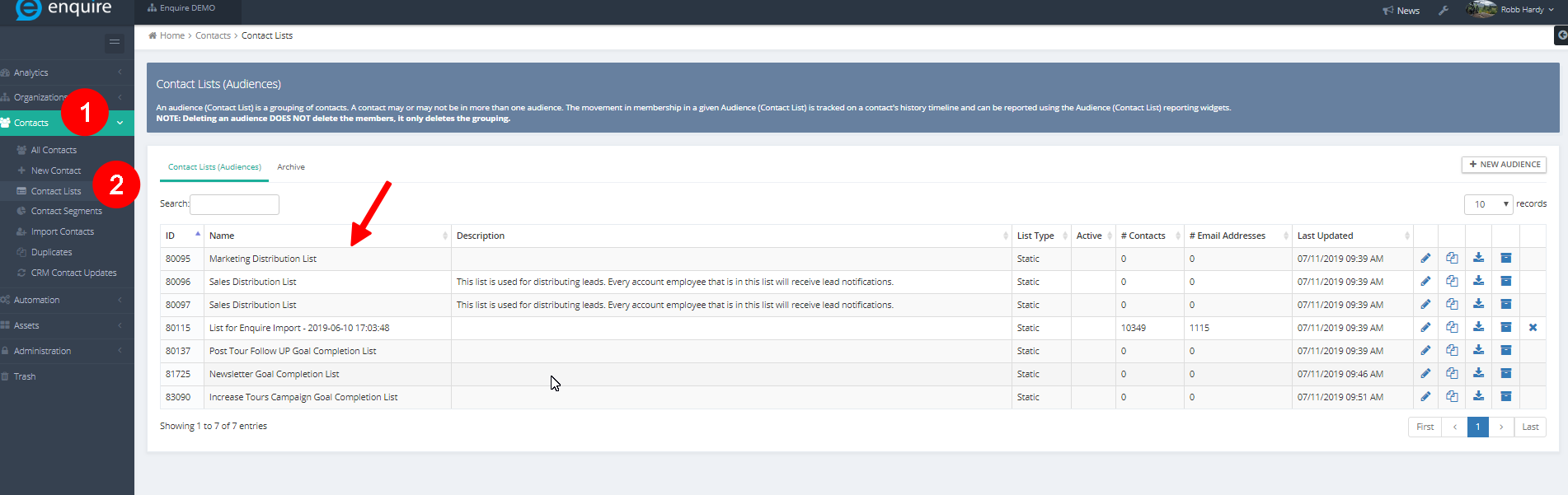 Step 1: Access Enquire MAP then navigate to Contacts then Contact Lists. Select the appropriate Sales Notifications list to add the employee to the list.
