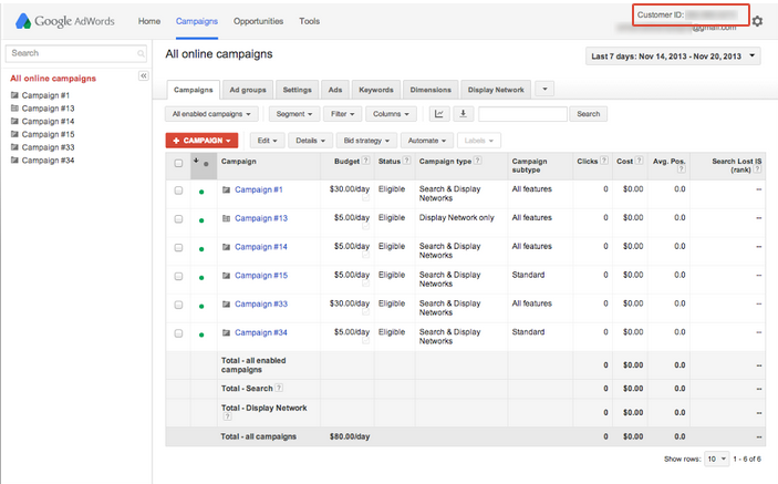 - The Customer ID will be at the top corner of any Ads page, near the email address. Do not use the MCC ID, this must be the Customer Ads Account ID.