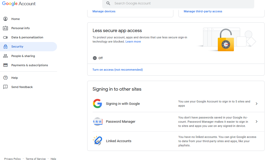 - Navigate to Security then Connected Apps & Sites